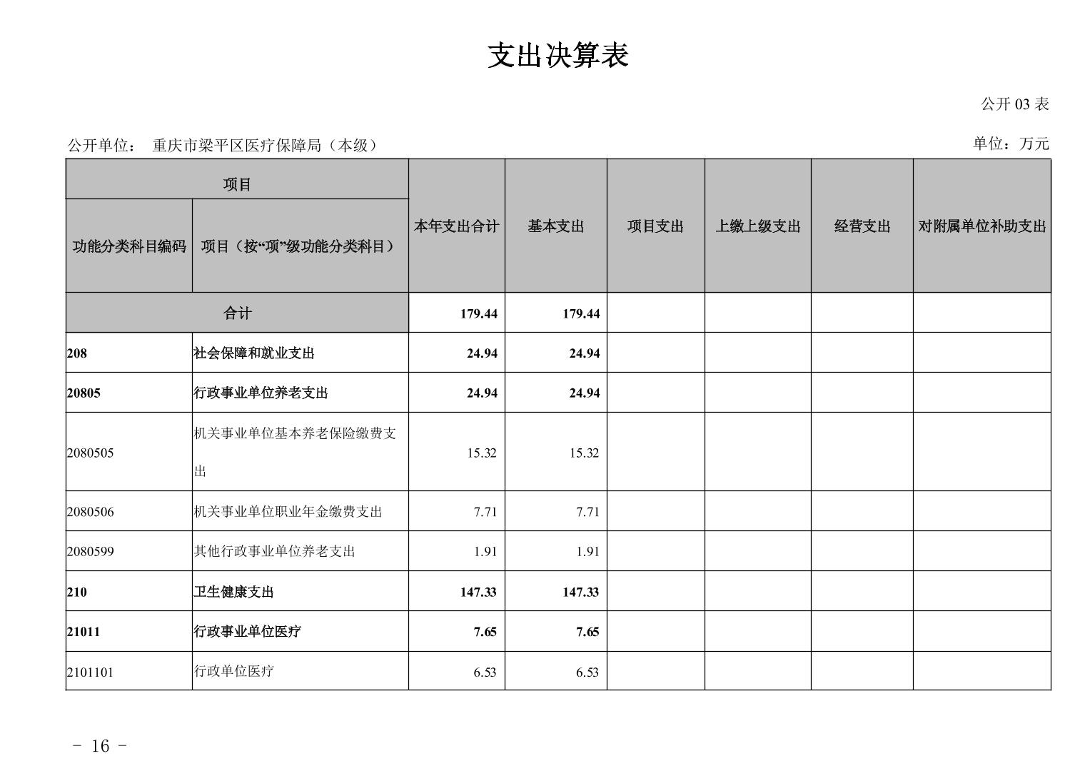 標題 重慶市梁平區醫療保障局(本級)2023年度決算公開說明