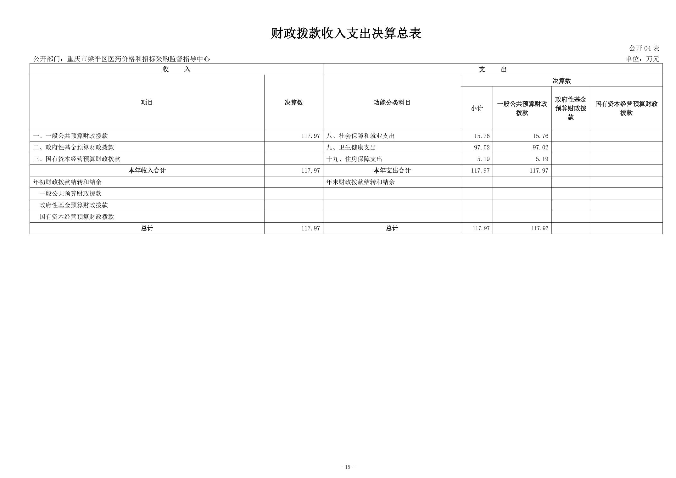 | 標題 | 重慶市梁平區醫藥價格和招標采購監督指導中心2024年度決算說明 |