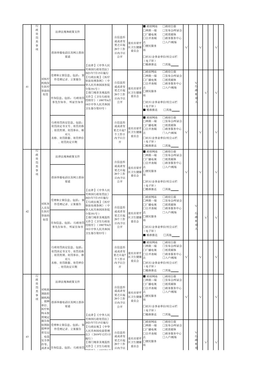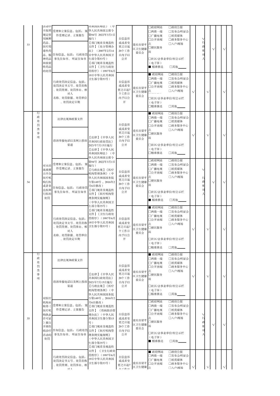重慶市梁平區衛生健康領域基層政務公開標準目錄