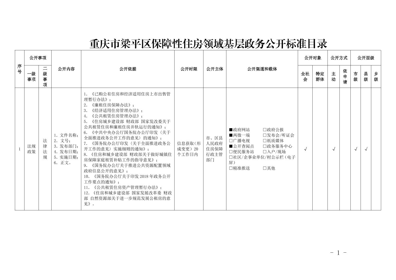 重慶市梁平區(qū)保障性住房領(lǐng)域基層政務(wù)公開標(biāo)準(zhǔn)目錄