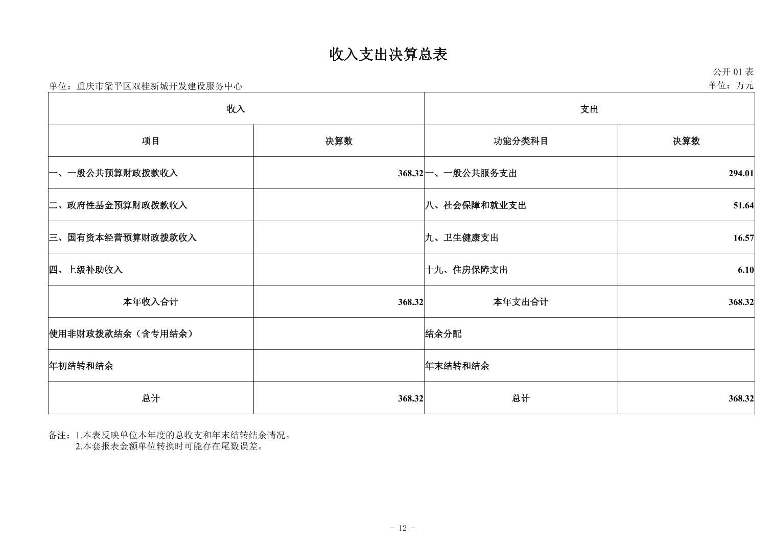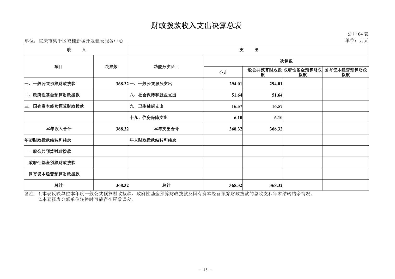標題 重慶市梁平區雙桂新城開發建設服務中心決算公開說明及公開報表(單位)