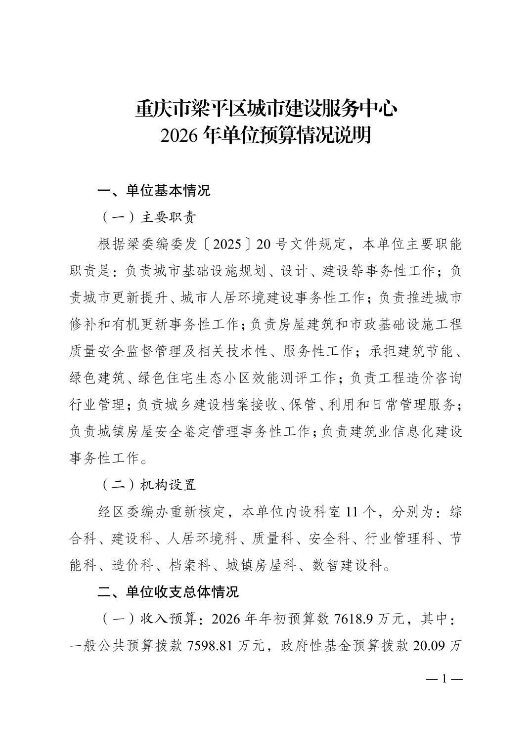 | 標題 | 重慶市梁平區城市建設服務中心2026年單位預算情況說明 |