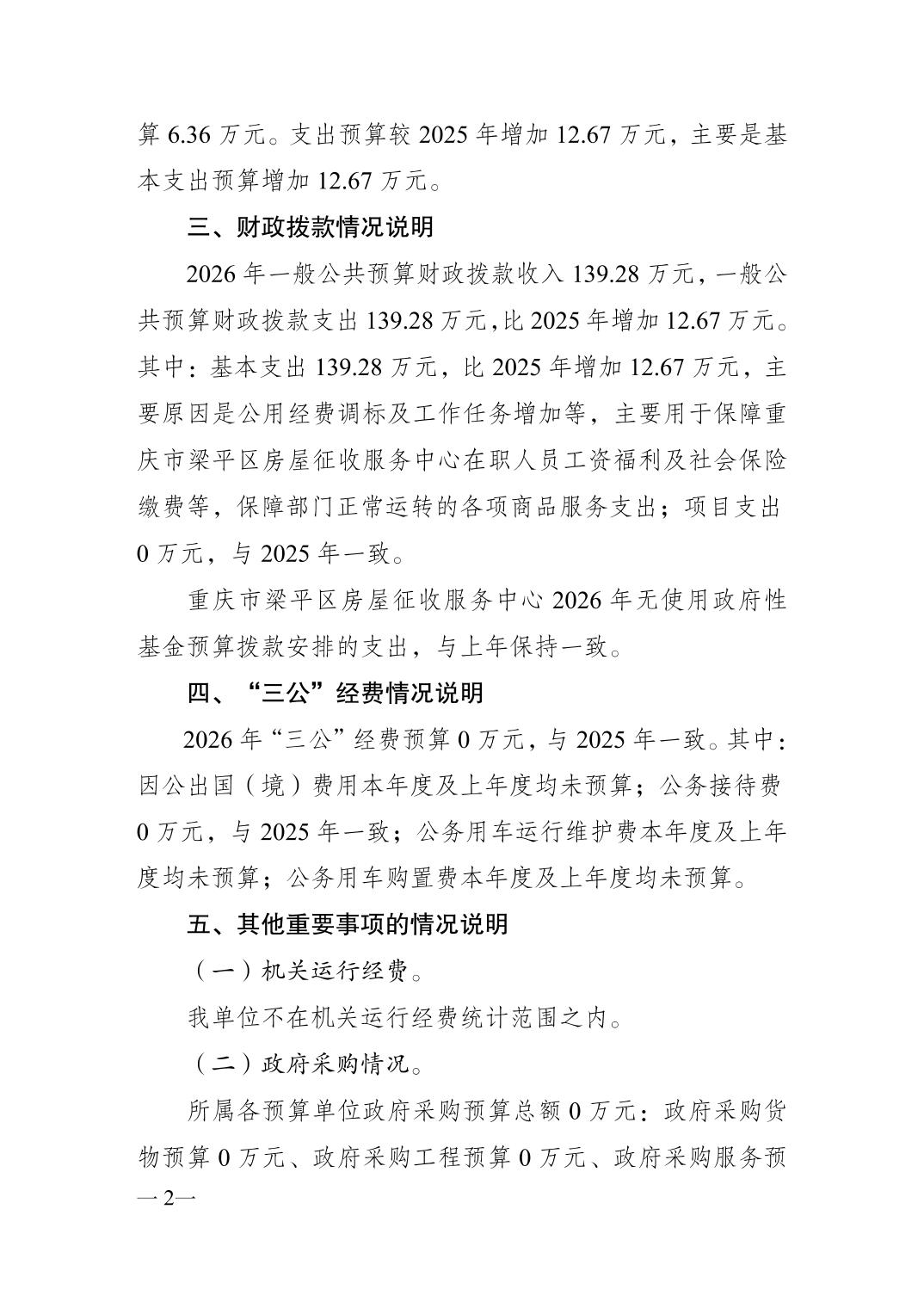 | 標題 | 重慶市梁平區房屋征收服務中心2026年部門預算公開情況說明 |