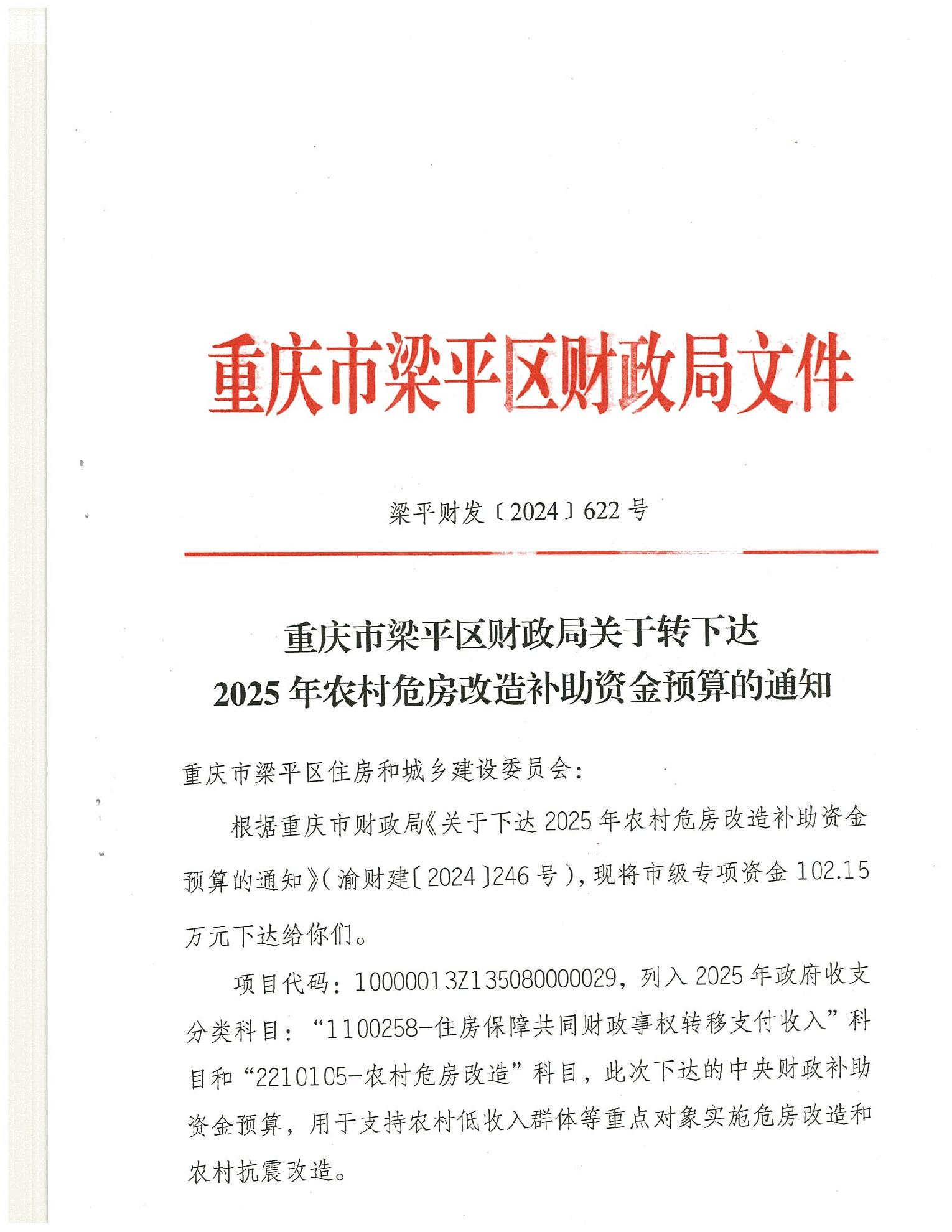 | 標題 | 關于轉下達2025年農村危房改造補助資金預算的通知 |