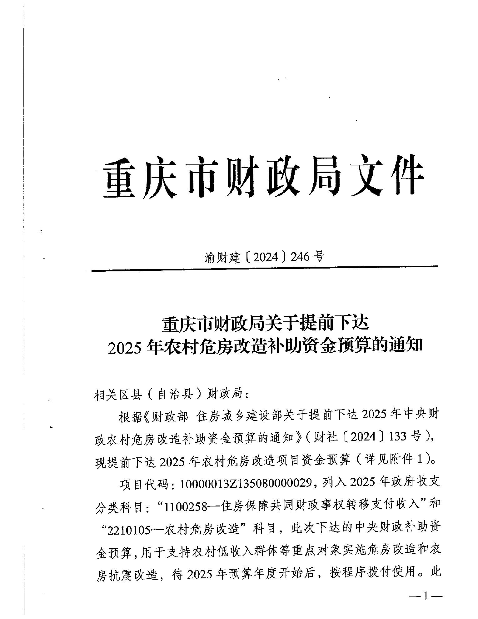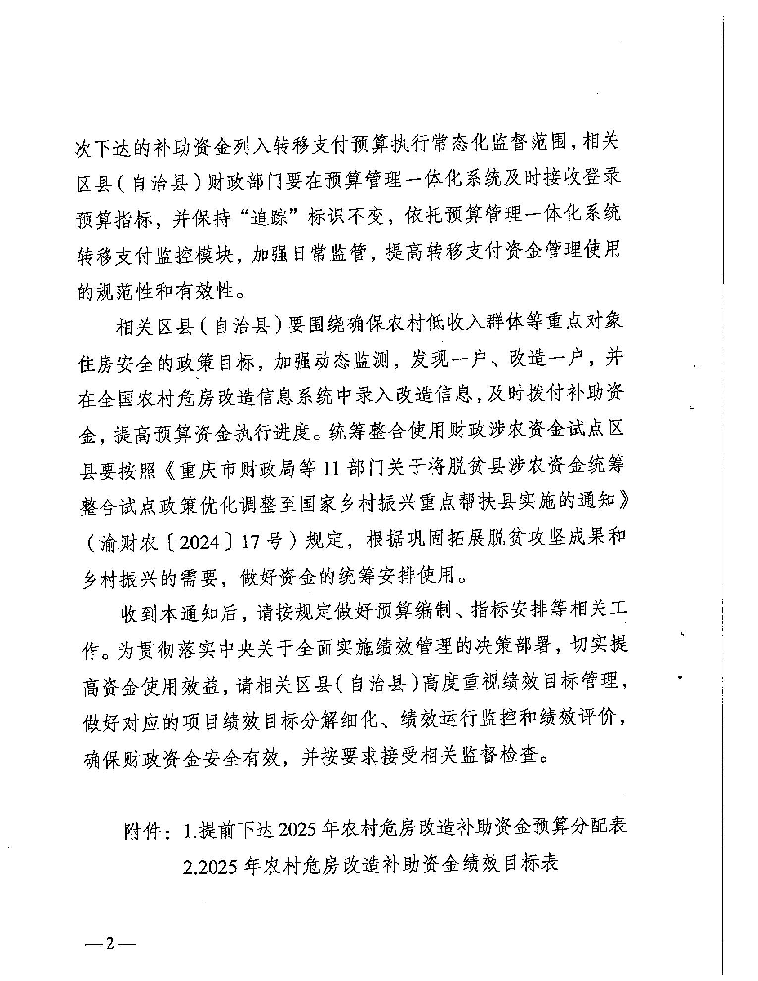 | 標題 | 關于轉下達2025年農村危房改造補助資金預算的通知 | ||