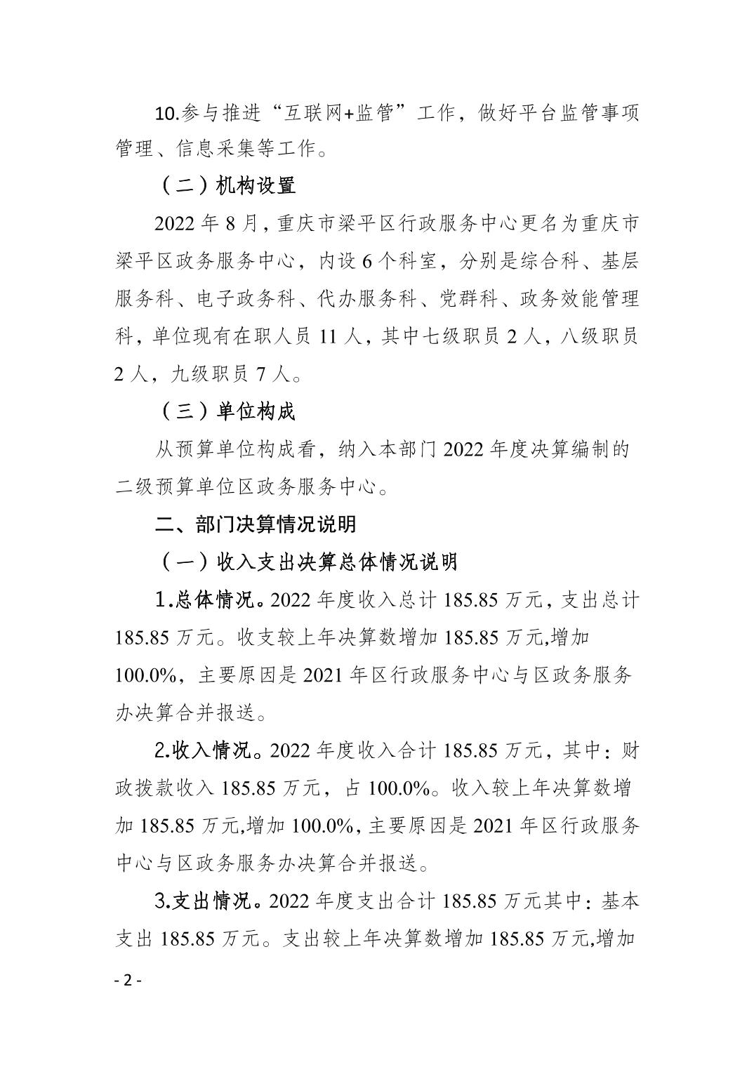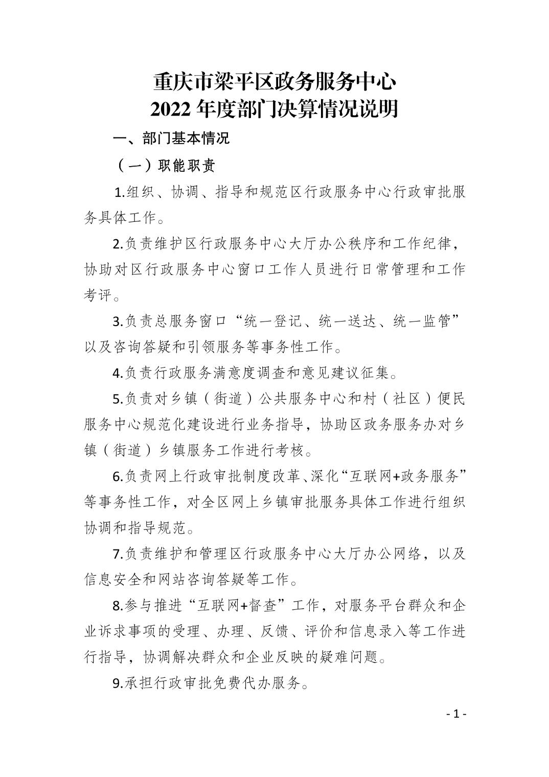 標題 重慶市梁平區政務服務中心2022年度部門決算情況說明