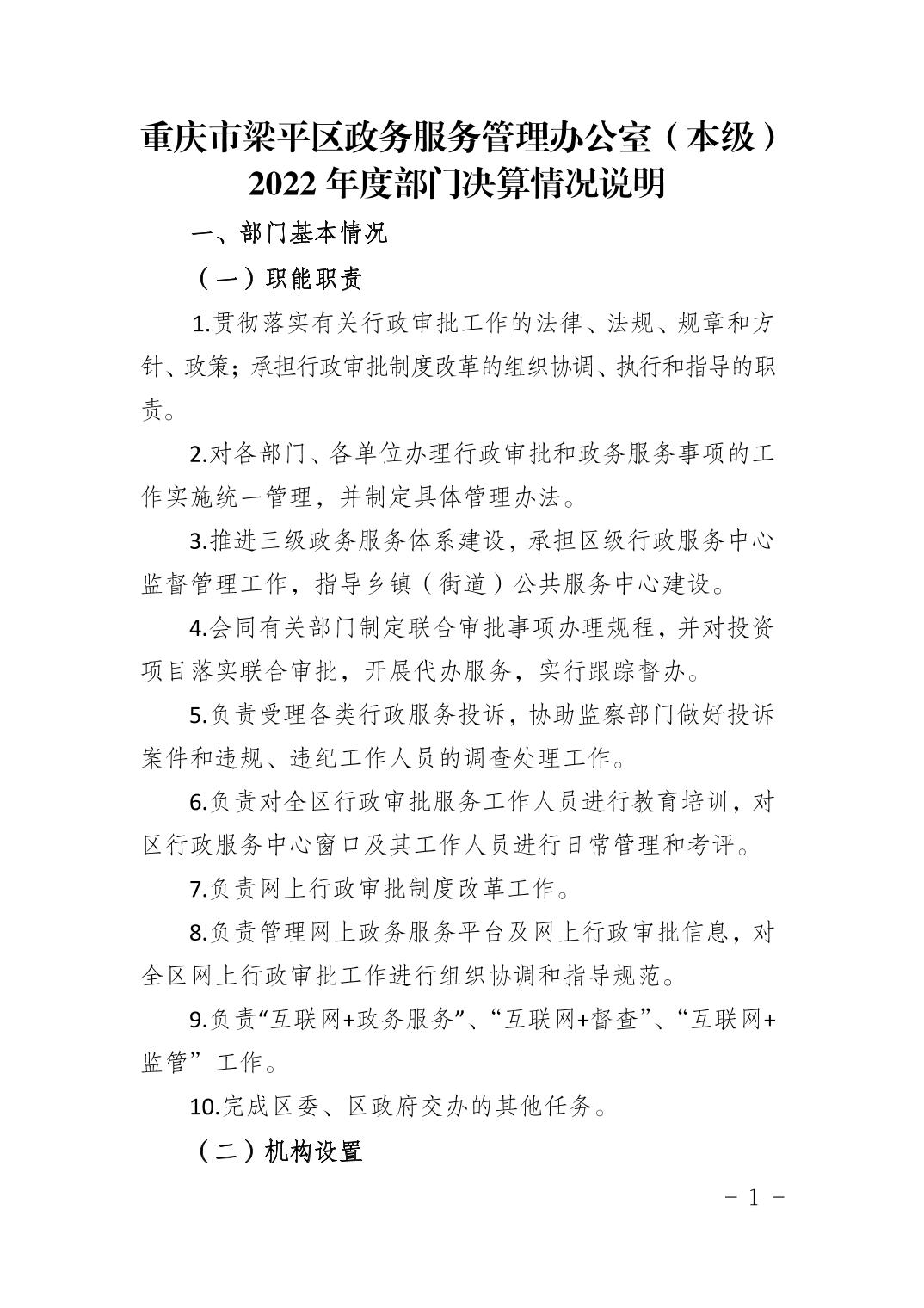 | 標題 | 重慶市梁平區政務服務管理辦公室(本級)2022年度部門決算情況說明 |