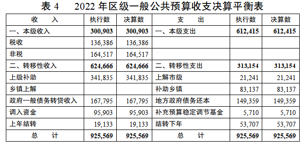 與區第十八屆人大第三次會議審議的2022年執行數(下同)相比,收支數據一致。