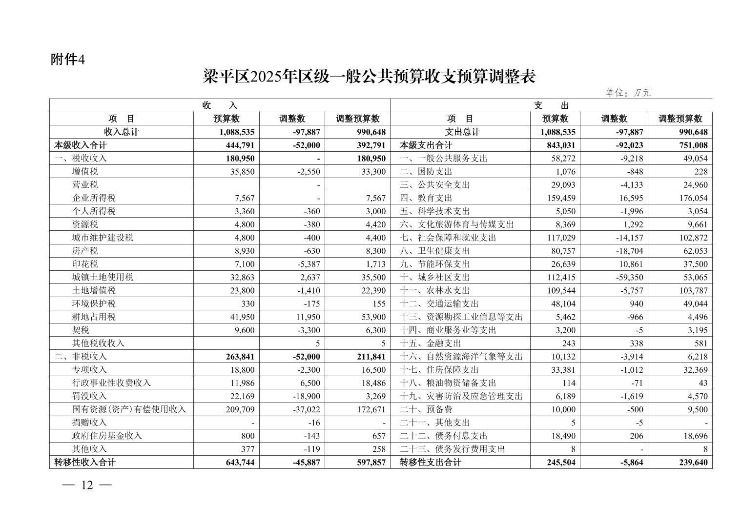 | 標題 | 關于重慶市梁平區2025年預算調整方案(草案)的報告(2025年12月18日) |