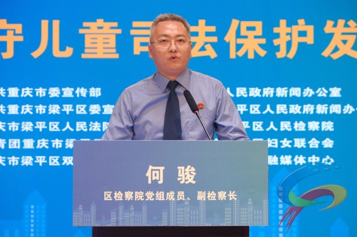 【何駿】:尊敬的各位領導、代表委員,親愛的市民朋友們,大家好!我是重慶市梁平區人民檢察院黨組成員、副檢察長何駿,重慶市梁平區人民檢察院從事未成年人檢察工作的檢察官們通過高質效辦案、多元化宣傳、綜合司法保護三大舉措,像法治園丁般呵護幼童們成長成才,形成具有梁平地域特色的未成年人保護品牌莎姐·檢護。今天我發言的主題是:檢護苗,守望未來。