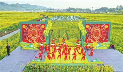 3月12日,回龍鎮柏河花谷,腰鼓舞《說唱中國紅》在精彩上演。記者 向成國 攝