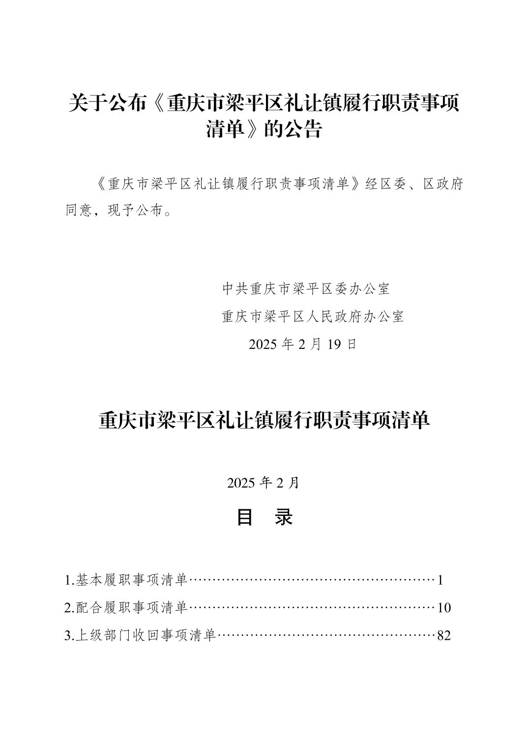 關于公布《重慶市梁平區禮讓鎮履行職責事項清單》的公告
