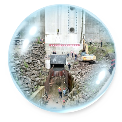 導流箱涵封堵是下閘蓄水的關鍵環節。建設團隊嚴格按照“導流箱涵清理、上游臨時擋水圍堰施工、疊梁閘門安裝、疊梁門前編制袋土填筑、鑿毛及錨桿施工、箱涵分六段依次施工、回填灌漿、接縫灌漿”的科學操作,精益求精推進每一道工序。