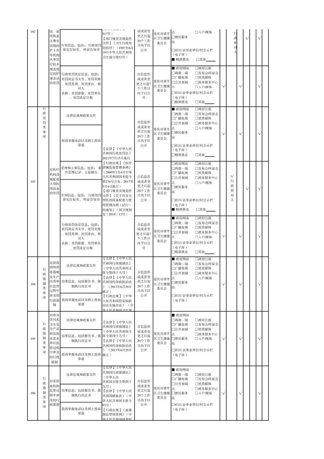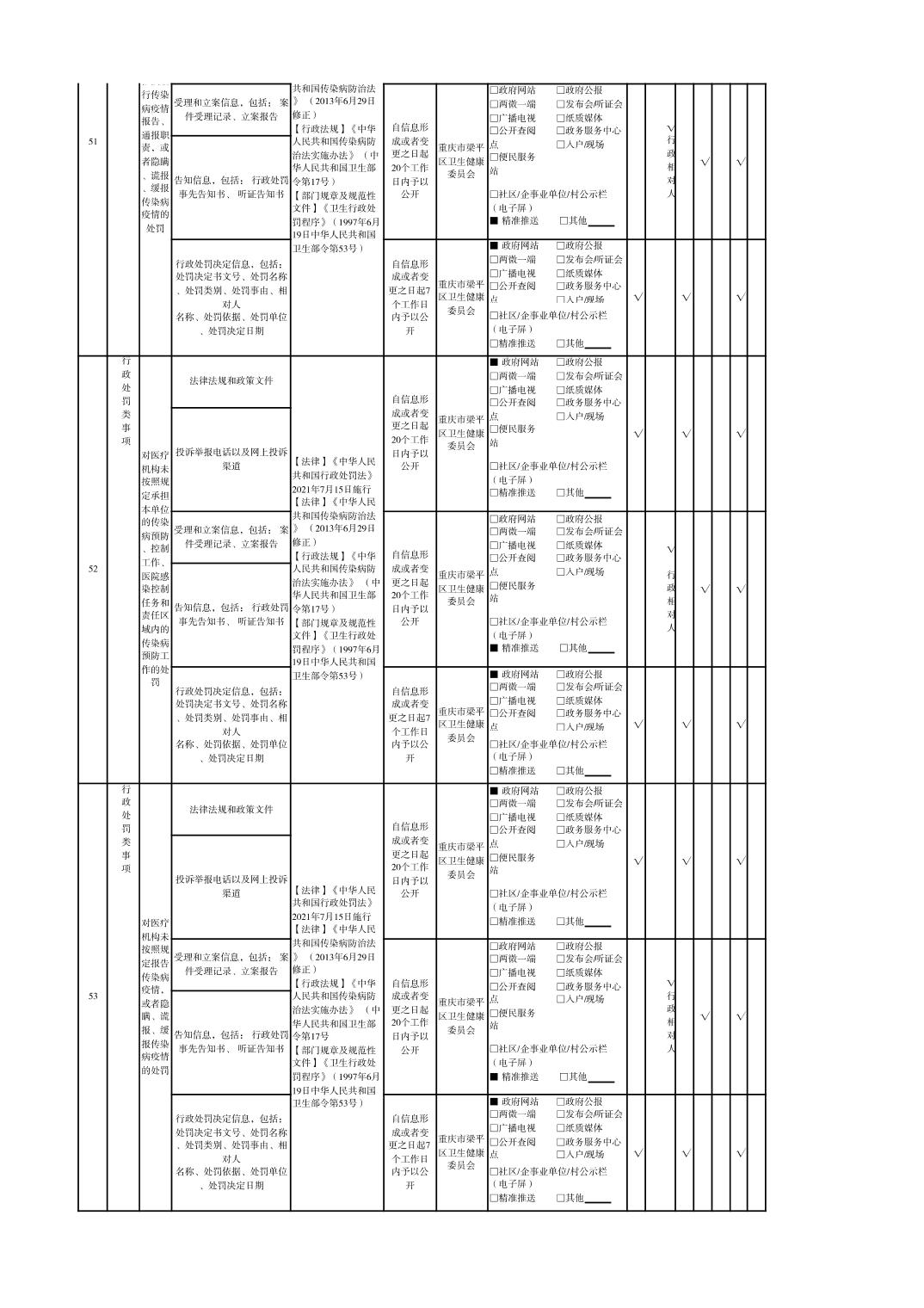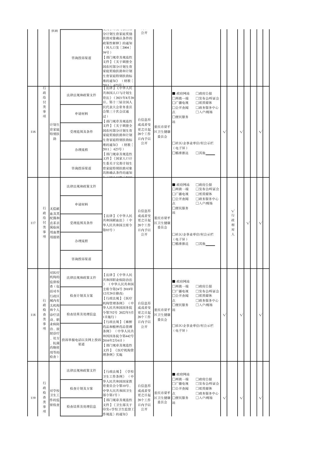 重慶市梁平區衛生健康領域基層政務公開標準目錄